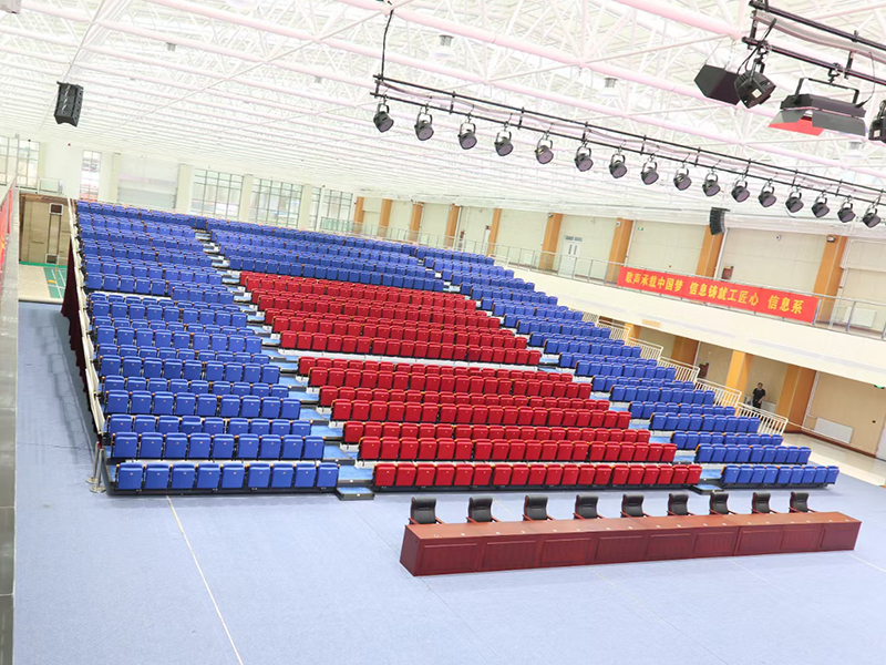 產品說明:該款產品為后置式伸縮看臺椅,座椅翻放可以選擇電動或手動(僅限尺寸較小)方式。